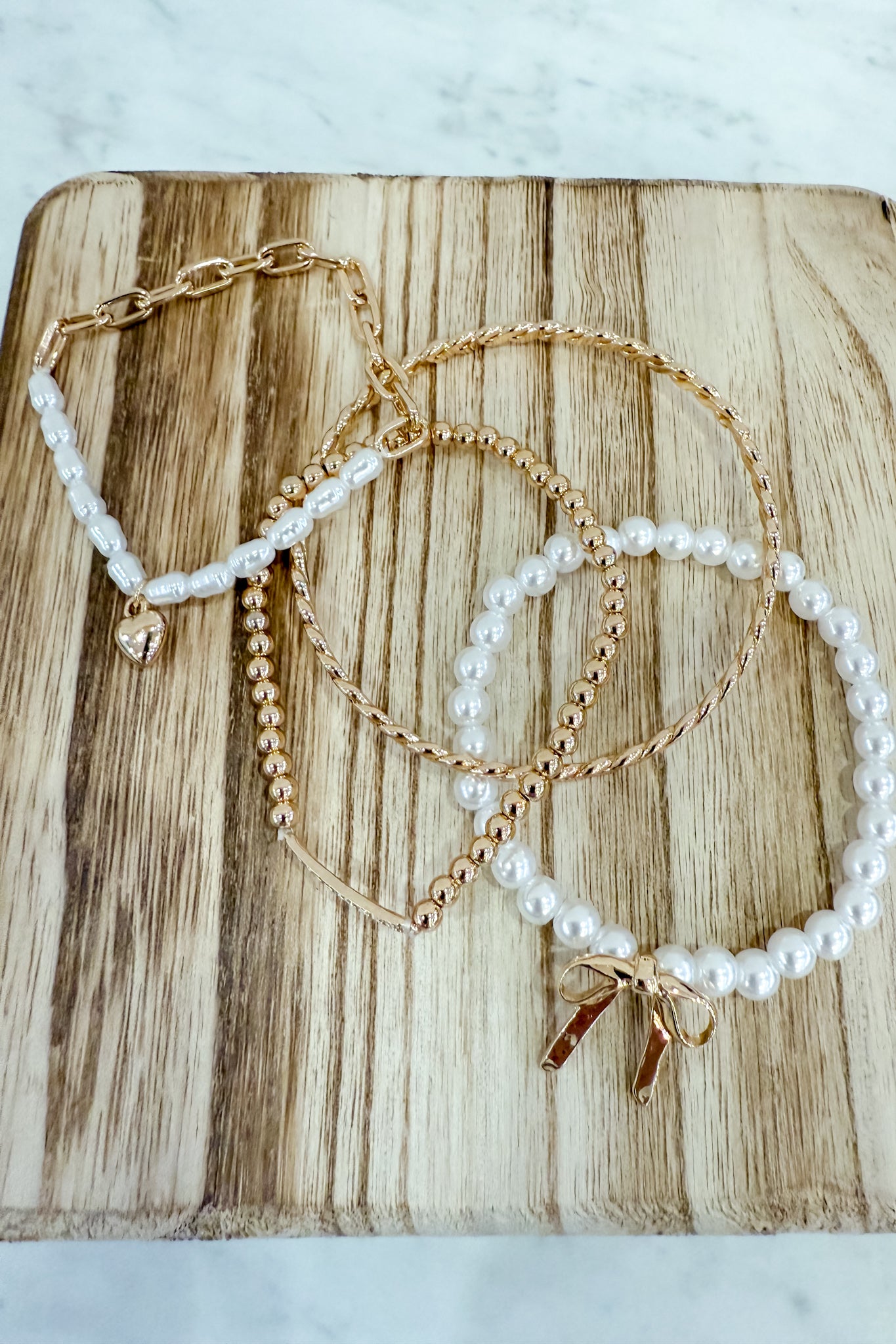 This charming collection features delicate bows and lustrous pearls. Each bracelet stretches to fit comfortably, making them perfect for stacking or wearing solo. Whether you're dressing up for a special occasion or adding a touch of feminine flair to your everyday look, these sparkling beauties deliver instant elegance. Mix, match, and shine!