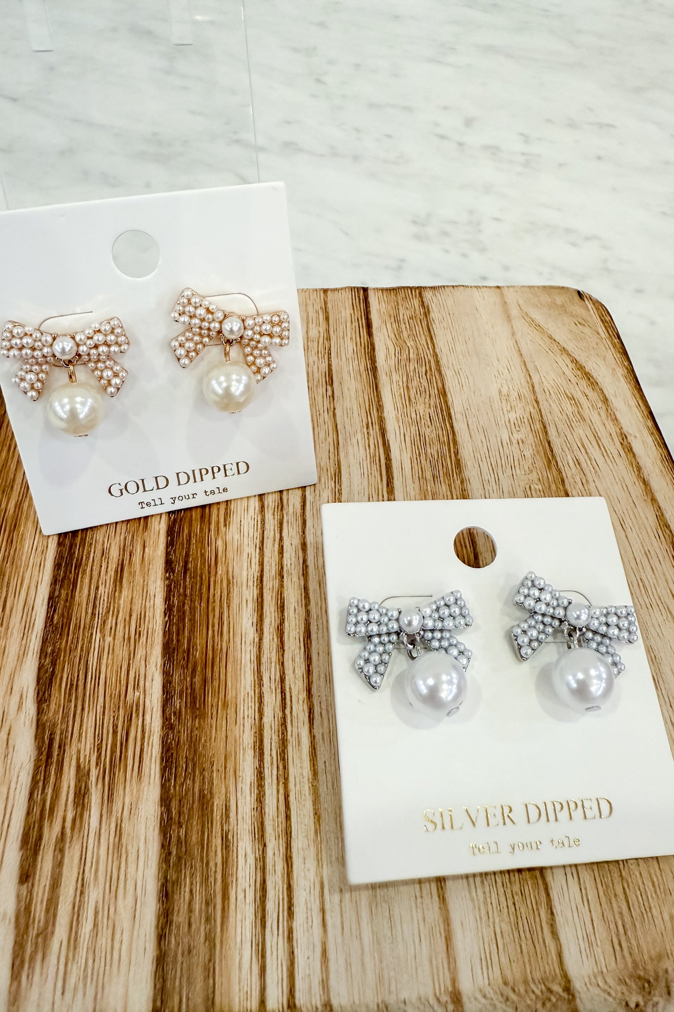 Featuring lustrous faux pearls delicately set in a graceful bow design, each earring is finished with a luxurious gold dip for a touch of sophistication. The secure post backs ensure comfortable, all-day wear for any occasion. Whether you're dressing up for a special event or adding polish to your casual style, these versatile earrings are the perfect accessory to help you shine with confidence.