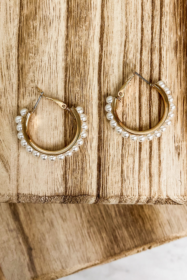 These hoops feature a sleek metal design accented by delicate faux pearl details and measure 1" in length, offering a stylish and comfortable option for everyday wear. Their classic look pairs effortlessly with both casual and formal outfits, while the lightweight construction and secure French posts ensure all-day comfort. Perfect for enhancing your daily style or adding a graceful touch to special occasions, these hoops combine versatility with enduring charm.