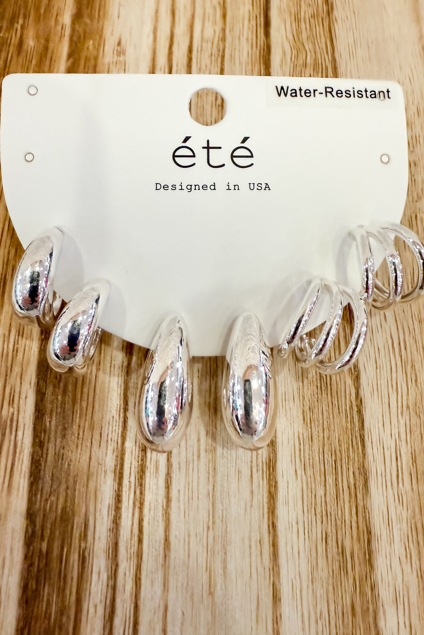 Elevate your everyday look with this versatile Silver Hoop Set, featuring three pairs of timeless hoops crafted from quality metal.