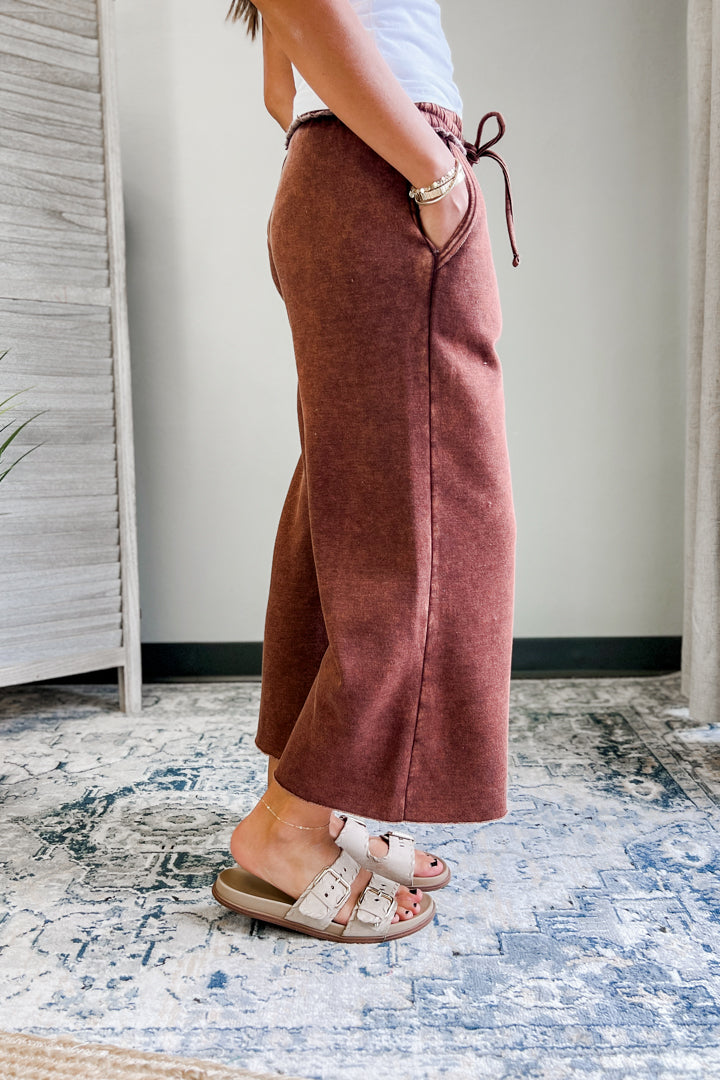 Acid Wash Fleece Palazzo Pants