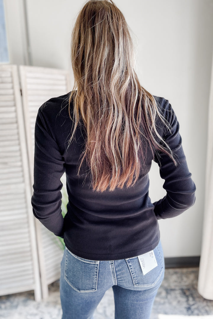 Elevate your closet essentials with this ribbed round neck long sleeve top!