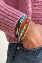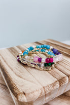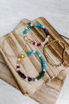 Delicate strands of vibrant glass beads dance together with gleaming gold accents, creating a mesmerizing mix of color and shimmer. Each carefully arranged layer adds depth and personality to your everyday look. Whether you're stacking it with other favorites or letting it shine solo, this playful piece brings instant charm and sophistication to any outfit.
