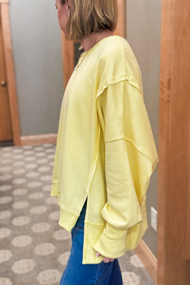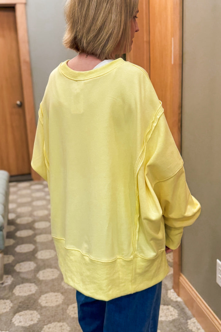 Oversized hi-low hem sweatshirt with exposed seam details.