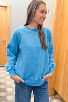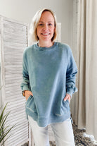 Stay cozy in our Pocket Sweatshirt, made with mineral washed fleece for extra softness!