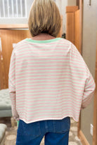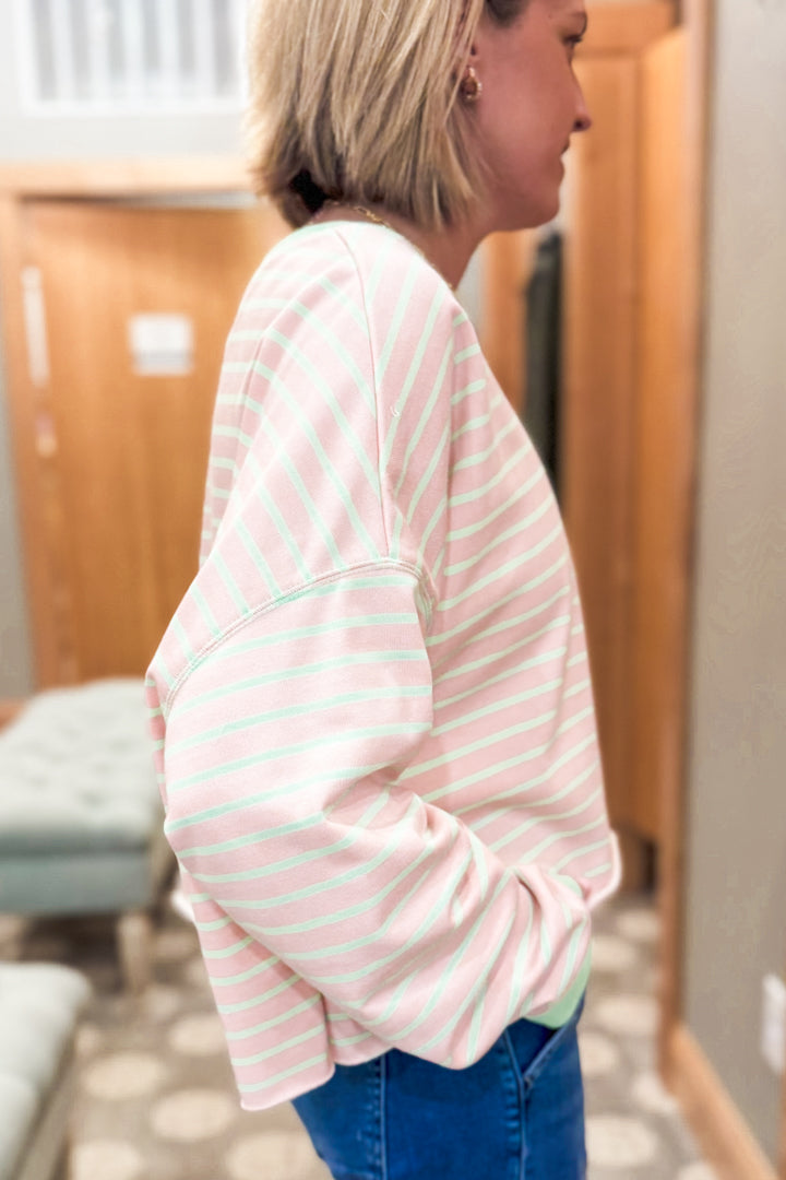 Made from buttery-soft french terry, this piece is basically a hug you can wear. The fun stripe pattern brings personality to your everyday rotation, while the cropped cut keeps things current and flattering. Toss it on with your favorite bottoms for instant outfit magic—whether you're heading to brunch, the gym, or just vibing at home. Comfort meets style in the most delightful way.