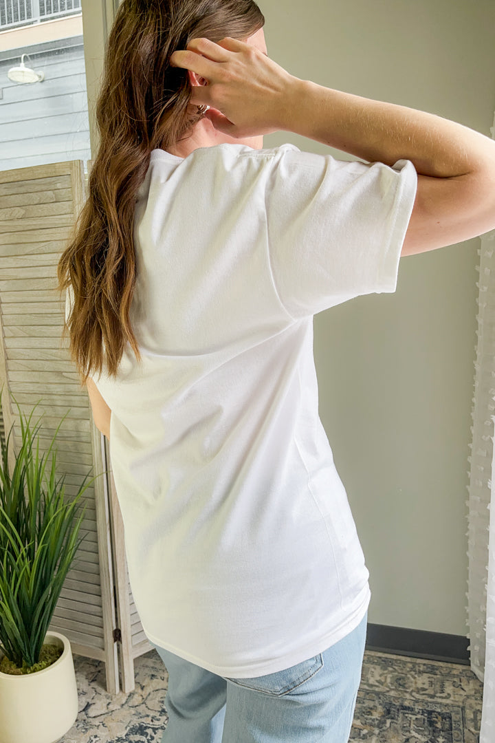 This top features an adorable graphic of cowboy boots and a bow, adding a playful touch to any outfit. With a relaxed fit, it's the perfect combination of comfort and cuteness. Yeehaw!