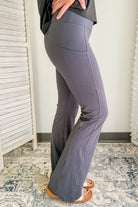 Elevate your yoga and everyday wear with our flared leggings. Made from recycled butter soft fabric, they provide ultimate comfort and style. Featuring convenient side pockets, our leggings offer both function and fashion.