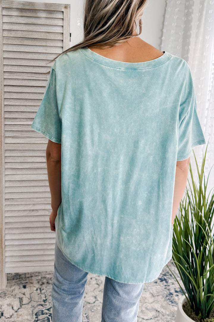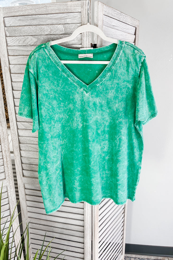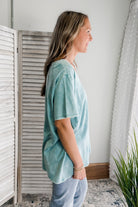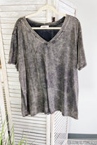Mineral washed tee shirt top for curvy women.