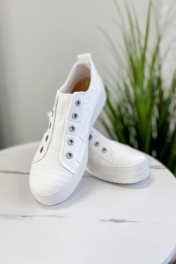 Featuring a platform sole, this sneaker provides extra height and comfort. With a pull on design and versatile canvas material, it can easily be dressed up or down. Get ready to play in style!