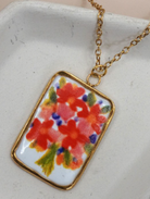 Handmade ceramic painted necklace featuring a real gold-dipped stainless steel chain. This 16" piece with 2" extension combines artisanal design with durable materials—crafted from high-quality stainless steel with an 18K gold finish that resists tarnish and fading.