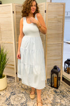 This sleeveless beauty features a scooped neckline that's both flattering and fun, paired with a tiered maxi skirt that twirls with every step. Perfect for everything from casual weekend adventures to dressed-up evenings, the Solenne brings movement and personality to your wardrobe. Slip it on and let the layers do the talking!