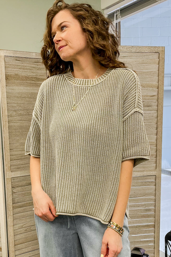 Washed Short Sleeve Sweater