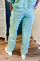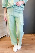 Cropped cargo pants made from mineral washed french terry fabric.