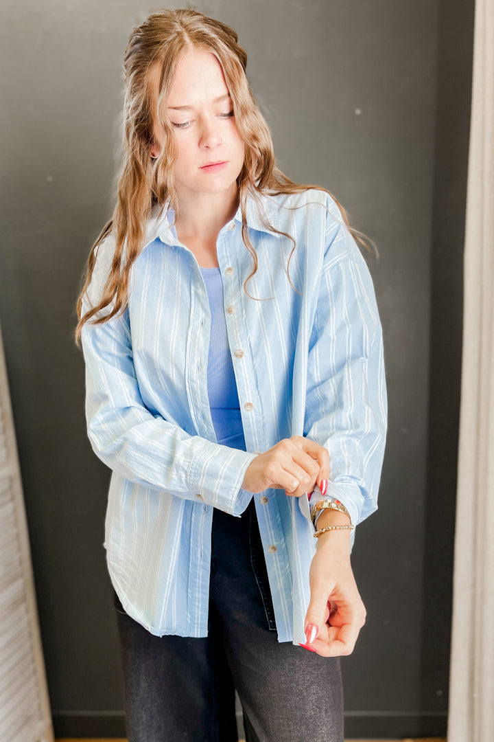 Throw on this oversized striped button-up and instantly elevate your casual game.