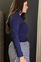 Sleek and simple, this soft, fine-ribbed fabric top offers a fitted silhouette that gently hugs your body while allowing breathability and subtle stretch. The classic crew neckline and long sleeves make it an essential layering piece for any season. Whether worn alone for a clean, modern look or layered under jackets and cardigans, this top ensures effortless comfort and style every day.
