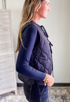 Women's front tie quilted vest.