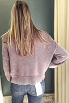 Cozy up in this playful acid-washed plum purple mock neck sweater!