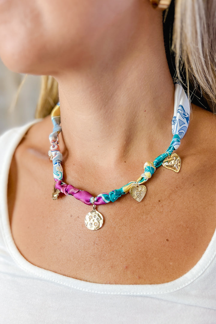 Disk & Heart Fabric Necklace