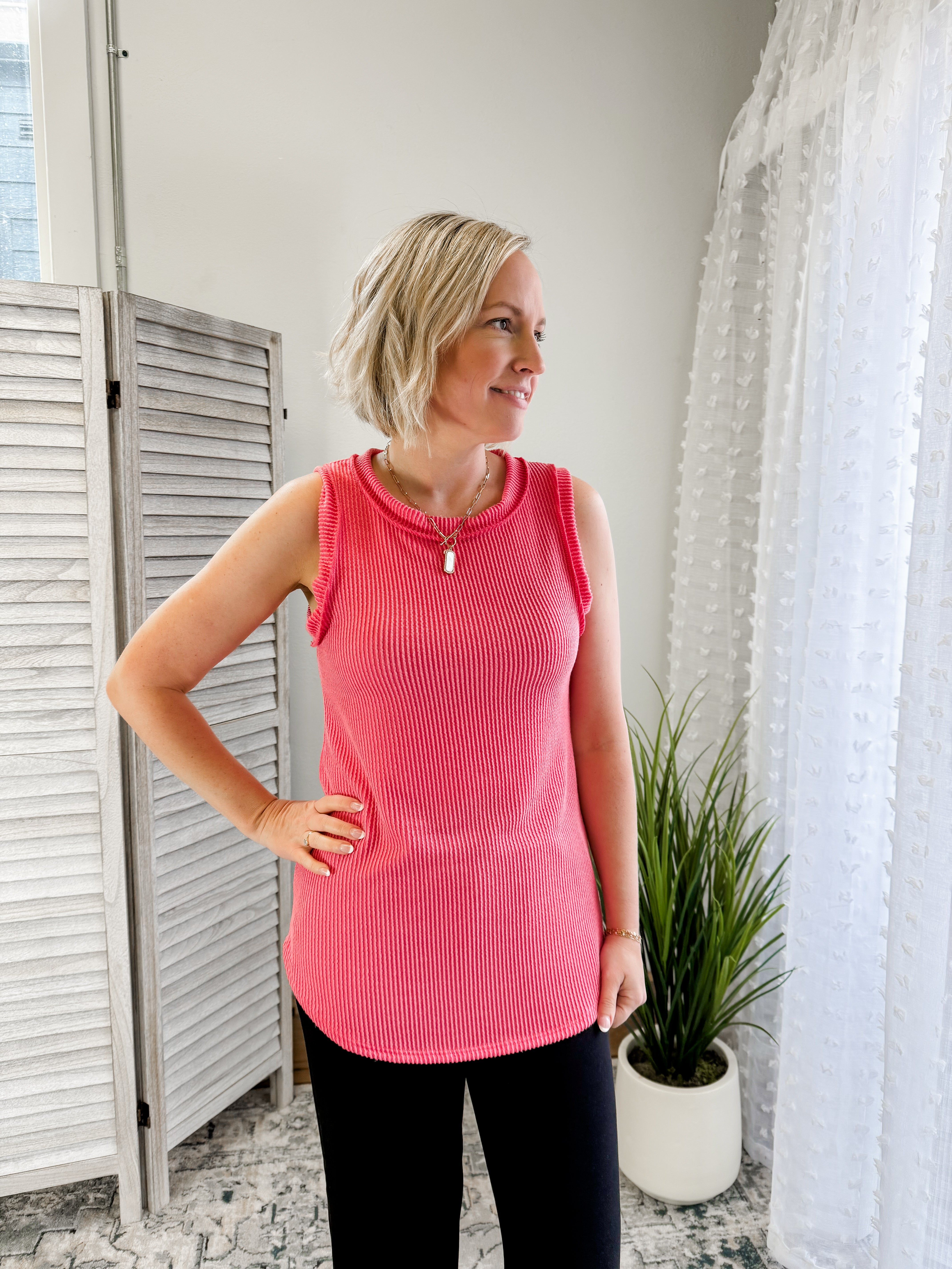 Stay cool and stylish in our Flowy Ribbed Tank!