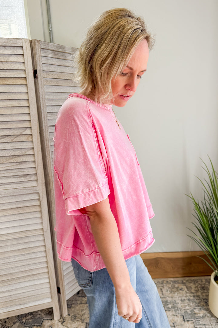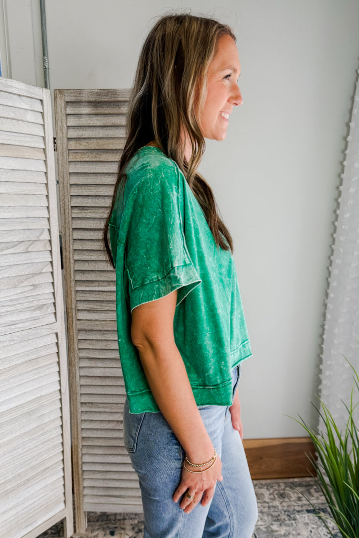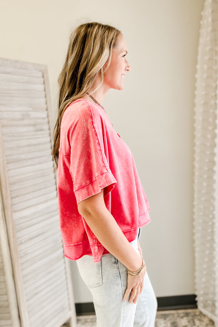 Made from mineral washed fabric, this tee is soft and comfy. Plus, it features a front pocket for that extra touch of style. Perfect for any casual occasion!