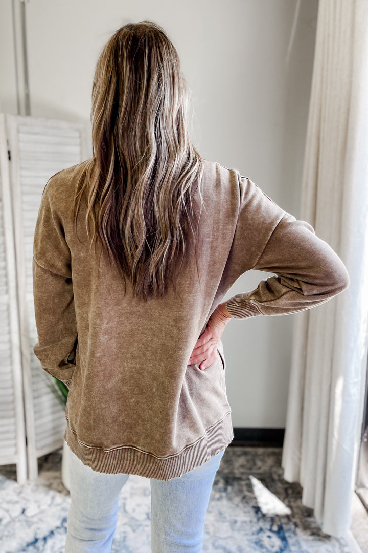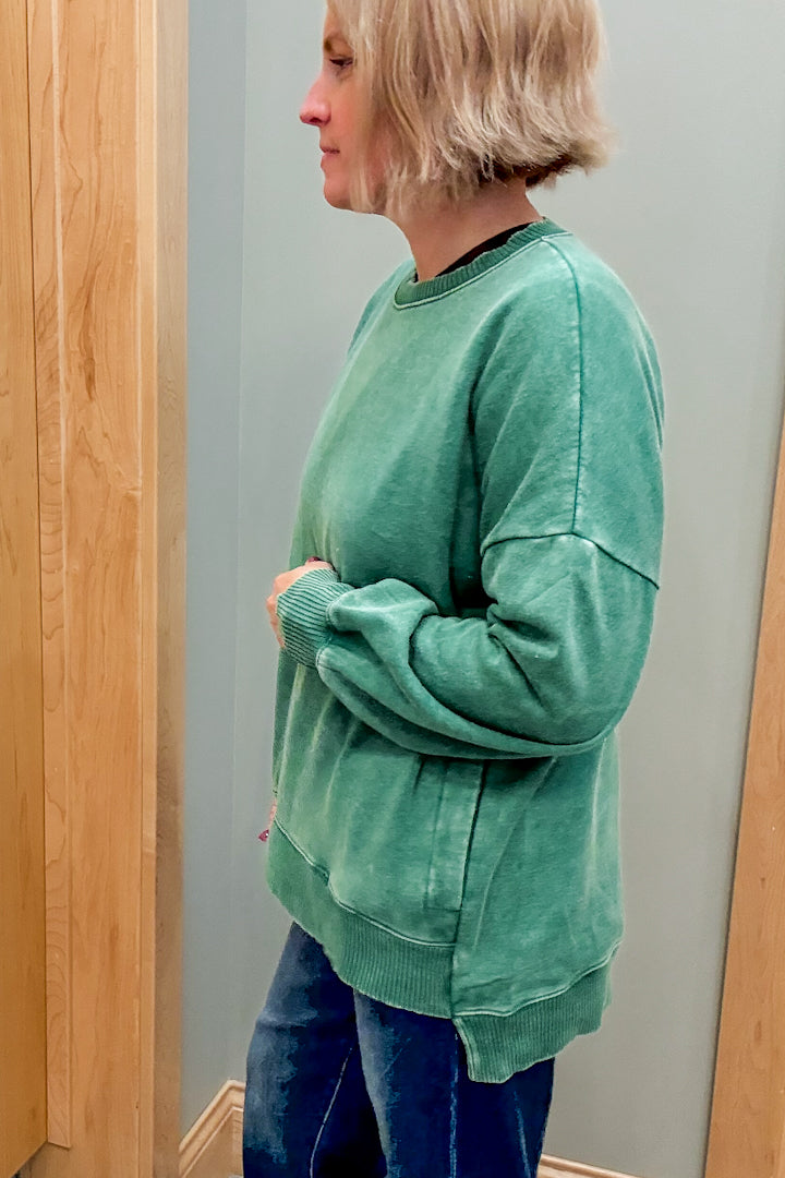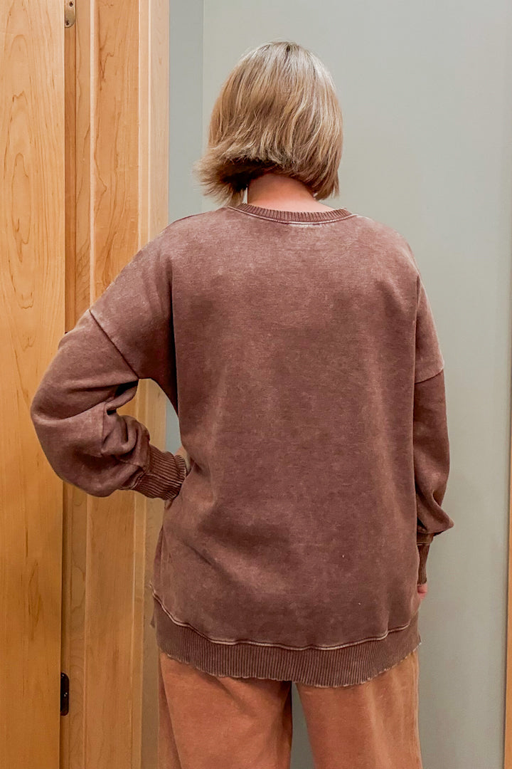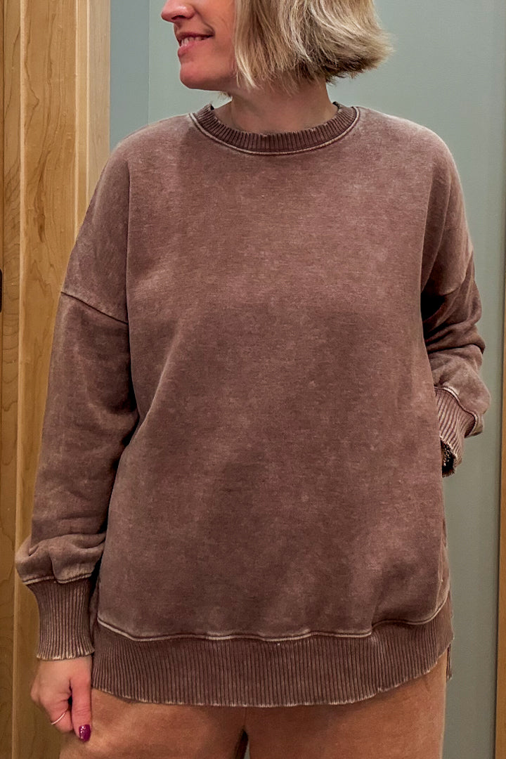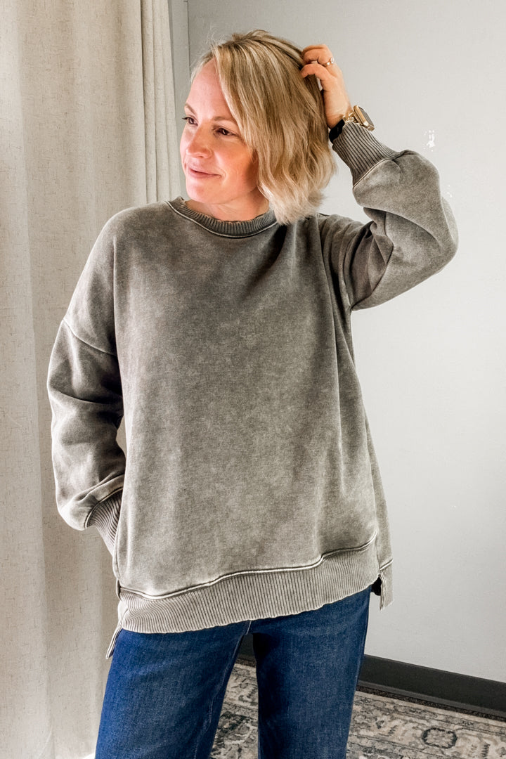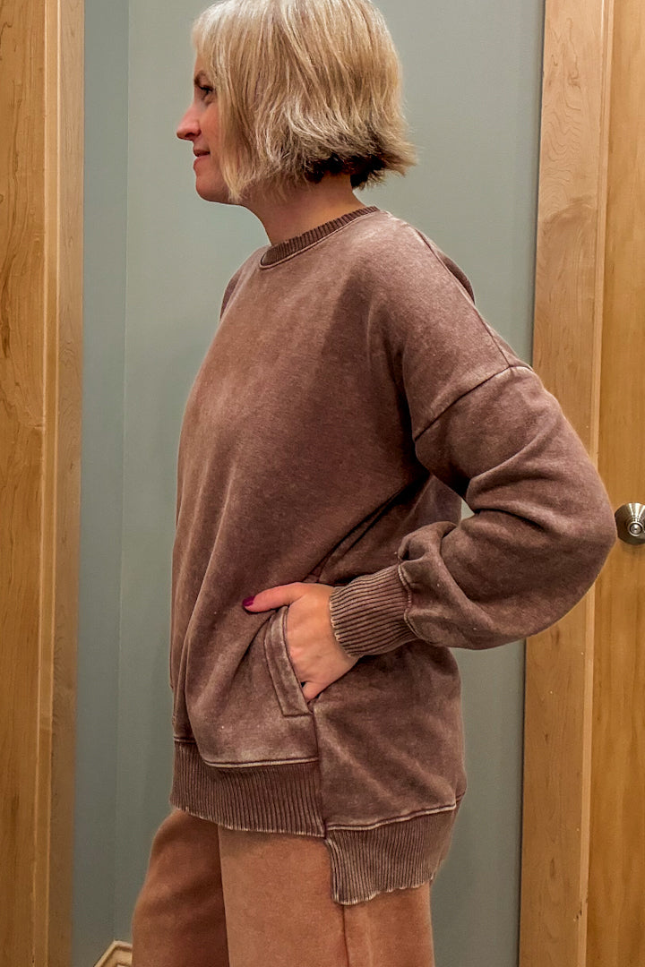 Stay cozy in our Pocket Sweatshirt, made with mineral washed fleece for extra softness!
