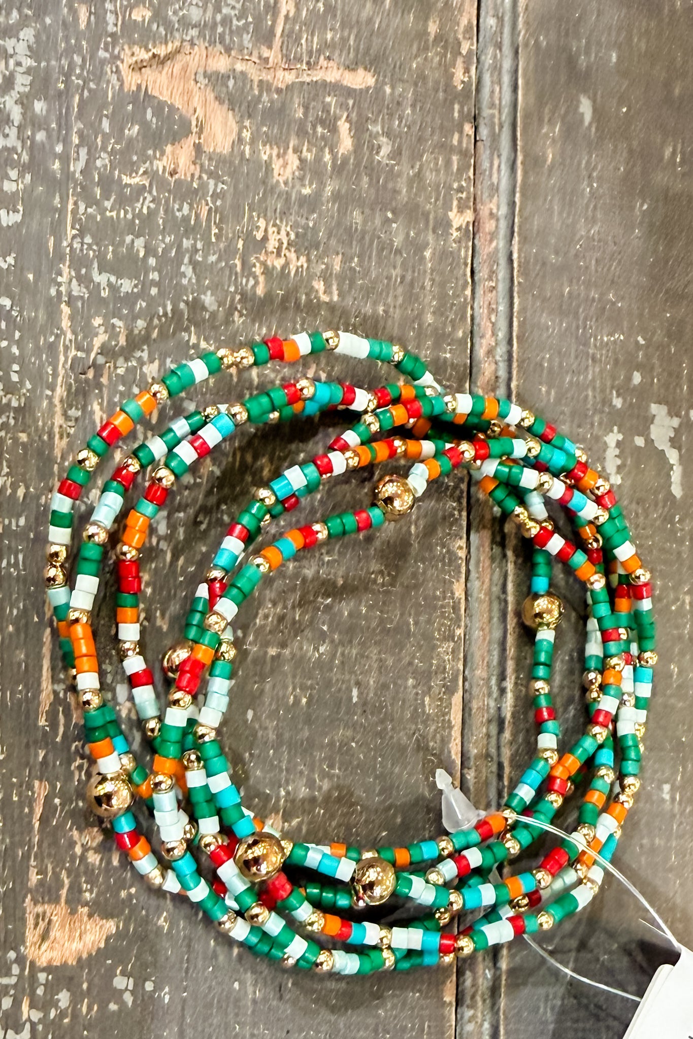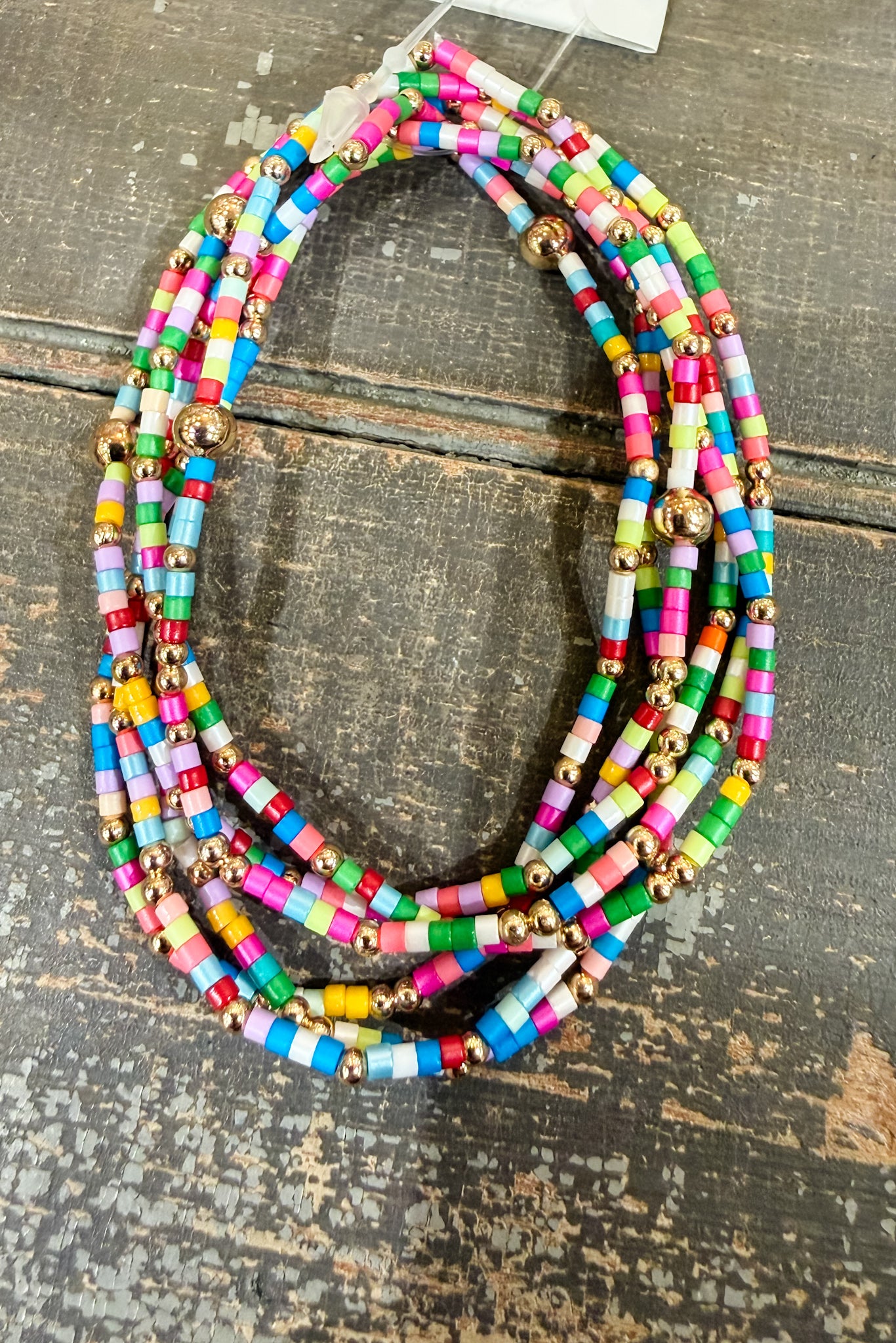 Set of six stretch bracelets made from seed beads.