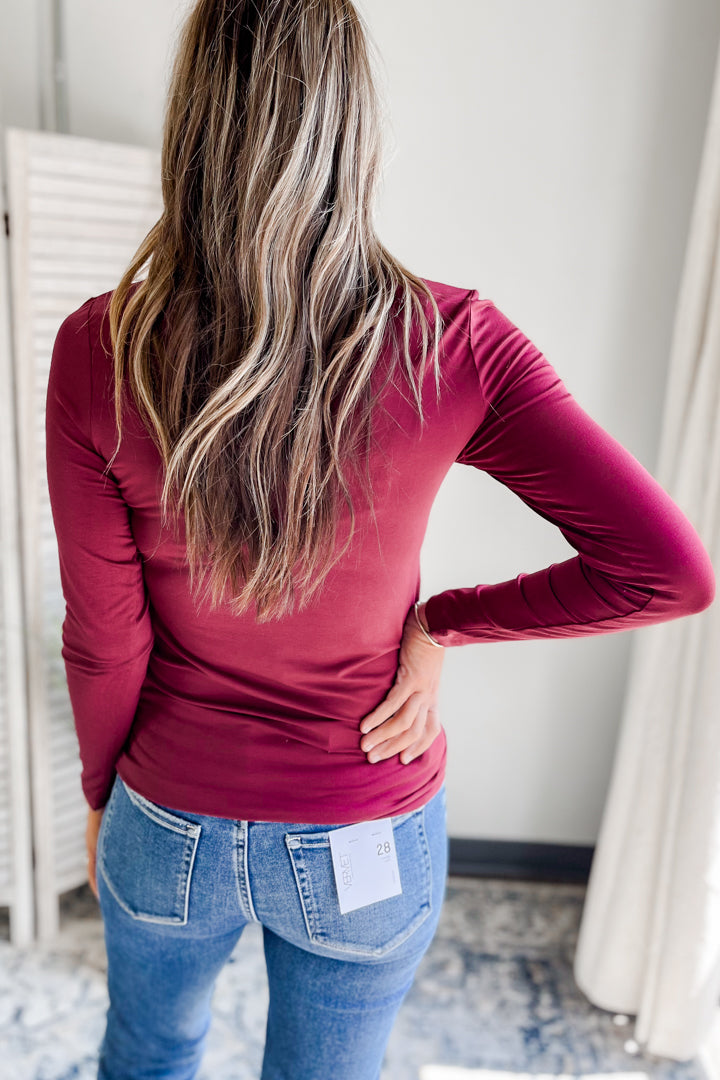 This turtleneck long sleeve top, offered in black and dark red, combines classic design with functional warmth. Crafted for a close fit, it provides comfortable coverage ideal for layering or standalone wear.