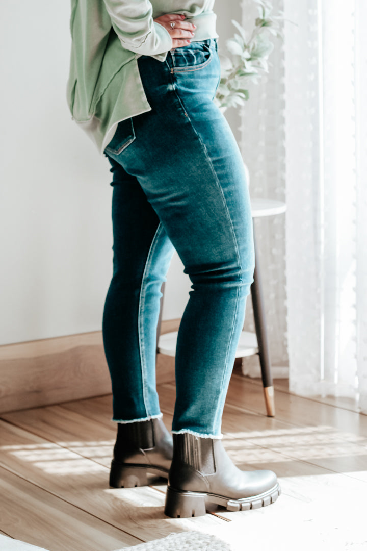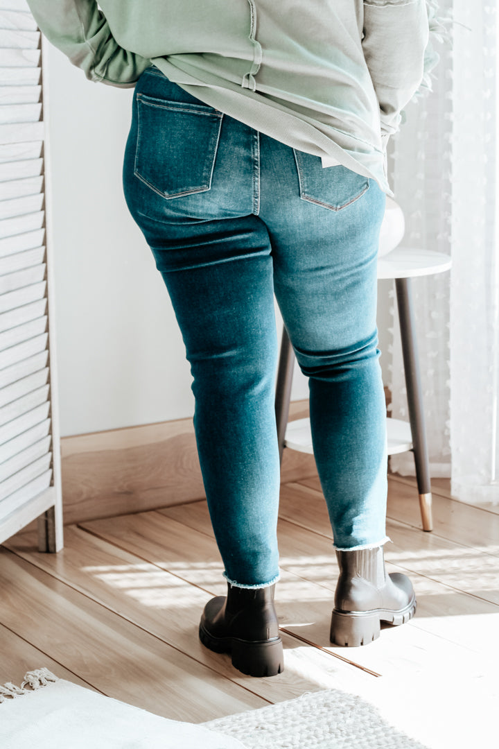 Made with comfort stretch denim, these cool jeans will make you feel like you're walking on (fray hem) clouds. The mid-rise fit and cropped length make it even better - you'll be looking good and feeling good!