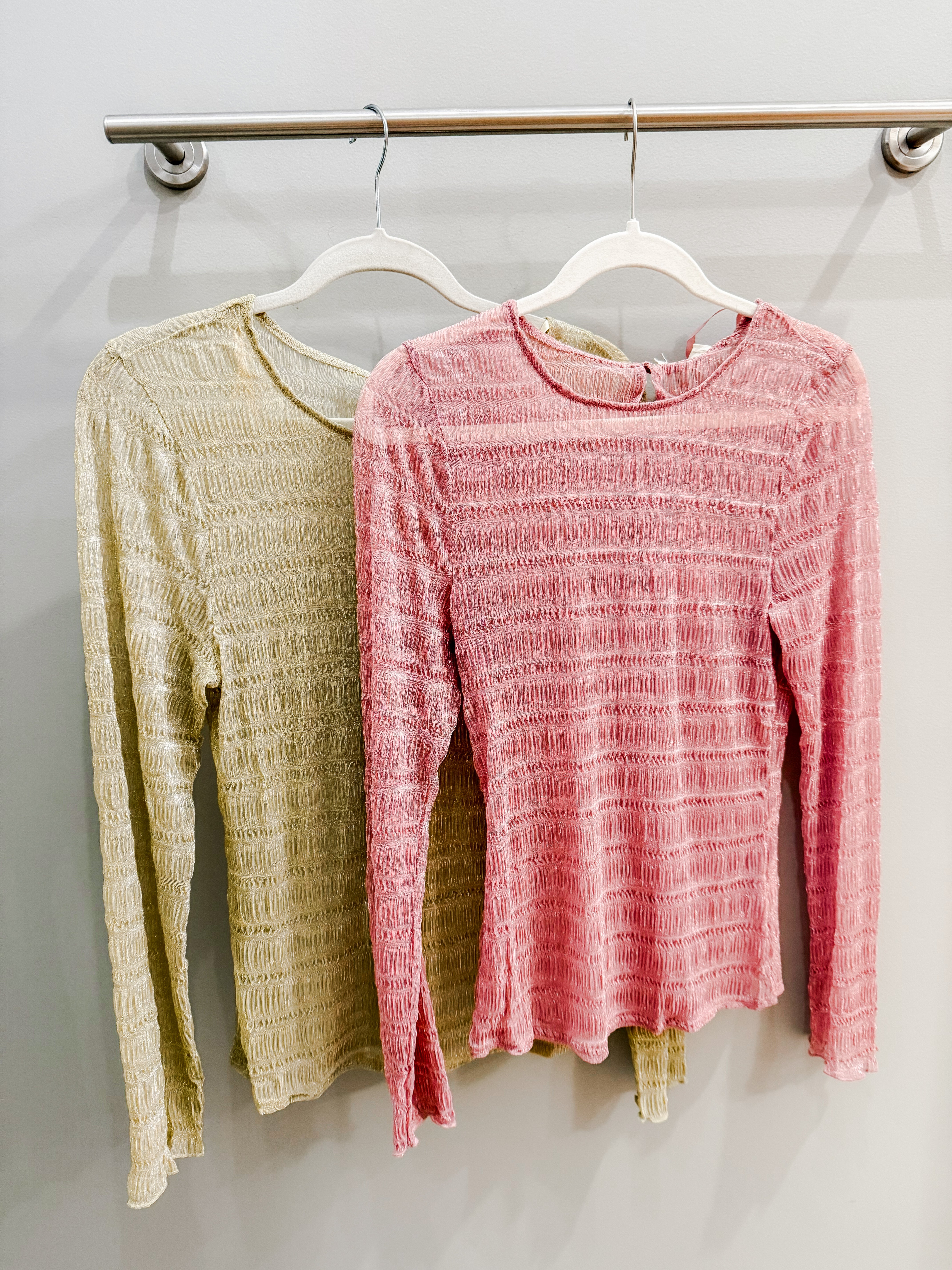 Sheer metallic long sleeve dressy top for women.